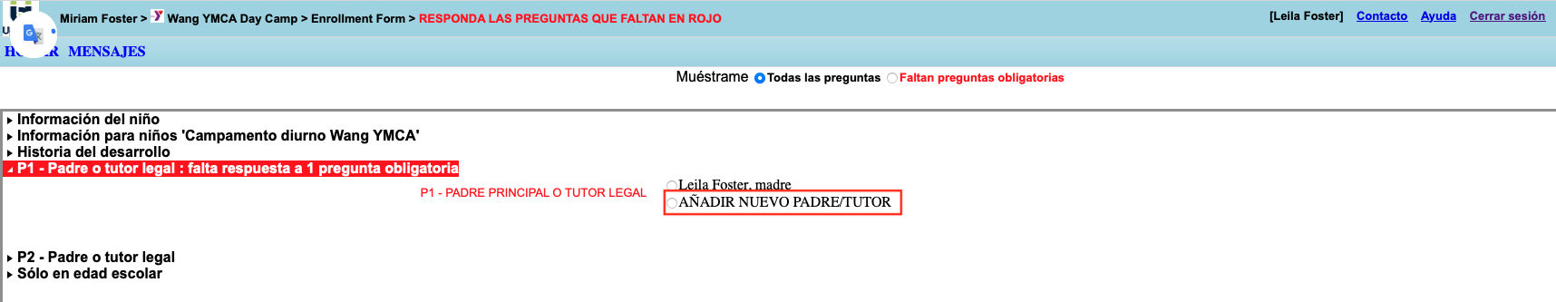 6. Seleccione AÑADIR NUEVO PADRE/TUTOR